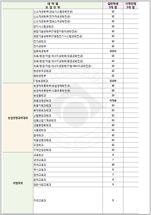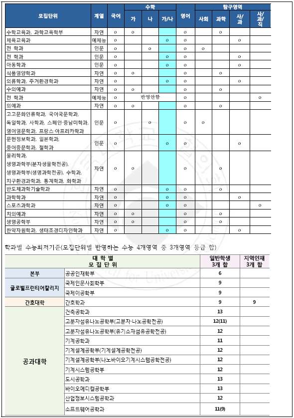 [2018학년도] 거점 국립대 학생부교과 수능최저등급 요약