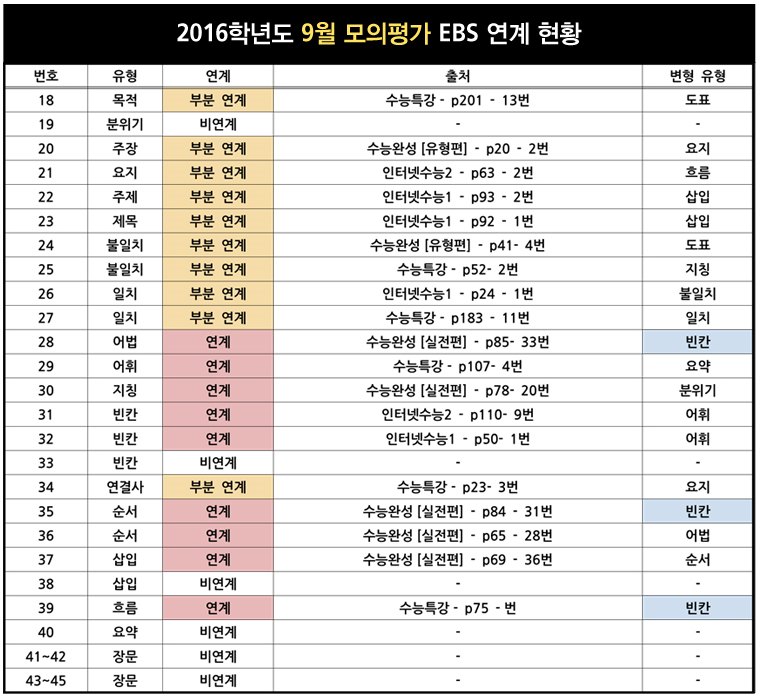 6월, 9월 모평 분성을 통핸 EBS교재 연계 문항 추론 까지 가능하도록 학습 목표