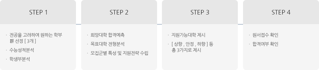 자신의 특기적성을 고려하여 원하는 대학을 선택 지원 가능하도록 데이터를 제공합니다.