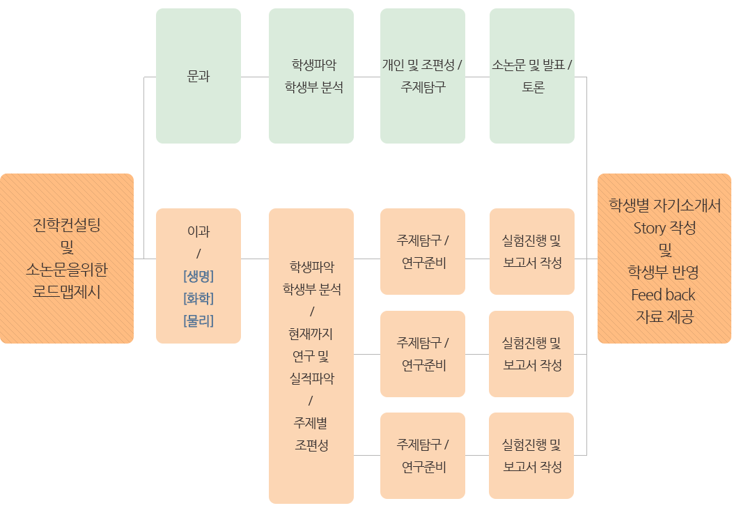 • 이과의 경우 교내 및 외부 탐구대회를 대비 할 수 있도록 컨설팅을 제공 합니다.